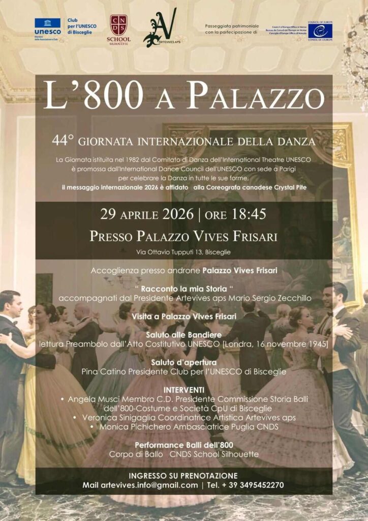 Since 1982, every year in the world, on April 29th it is celebrated the Dance Day, established by CID of Unesco and set on the day of birth of Jean-Georges Noverre. However, in the silence of these days, Dance Day 2020 in Cosenza makes its curtains fall. The II edition of Dance in Music, planned for Dance Day 2020, has been postponed to better times. With the success of its I edition in 2019, Dance in Music, supported and promoted by CID of Unesco, had celebrated for the first time in Cosenza the Dance Day. The event in Cosenza comes from the professional commitment of Michele Ferraro (member of CID), solo dancer of the San Carlo Theater in Naples, and of Ida Zicari (member of CID), pianist and critic of dance, with the cooperation of the Music Conservatory “S. Giacomantonio” and of the Association “Danza&Musica”. It comes from the current necessity to give back to dance a full awareness of its ties with music, to return to the “mute gesture” its endless possibilities of meanings. It wants to assert the centrality of the human subject in dance and music, and to give back to the two arts the original vocation of social, ritual, sacred event, answering with urgency to the challenge that the digital era presents nowadays. Dance in Music, then, on the stage of the Casa della Musica in Cosenza, protects, promotes, transmits cultural heritage, proving the alliance of the sister arts in a concert in dance in which past and present meet, connect, newly think each other. And, for its II edition, the pianistic masterpieces of Chopin and Schumann, played by Ida Zicari, live again in the choreographies of Antonella Ciappetta, Michele Ferraro, Angela Tiesi; they evoke a poet, Adam Mickiewicz, convinced that : «When music and dance work in concert, the effects that these two arts reunited can produce become sublime» (J.G. Noverre, Lettres, ed. 1803).